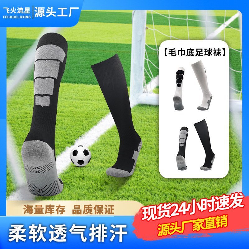 夏用メンズタオル底ロングサッカーソックス 吸汗消臭 子供大人用試合スポーツソックス 即納卸売