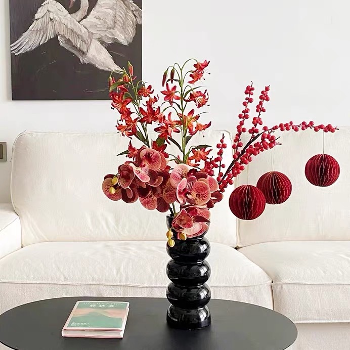 冬青紅果新年装飾花置物発財果花置物偽花客間食卓花芸