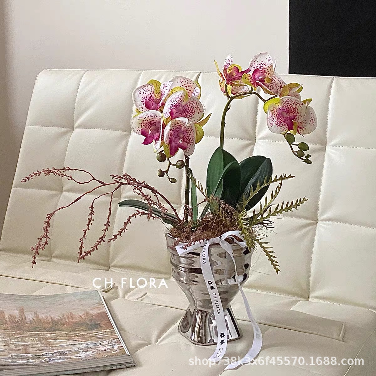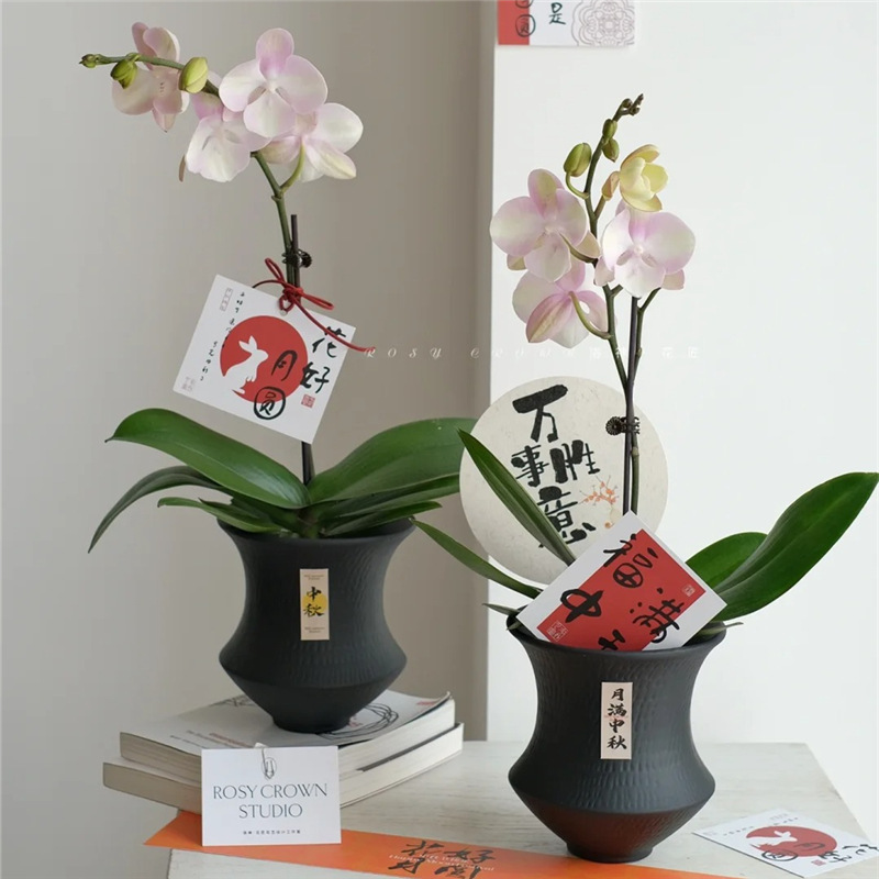 高級胡蝶蘭植木鉢ネット赤銀色植木鉢陶磁器ins新年飾り花瓶蘭専用セット