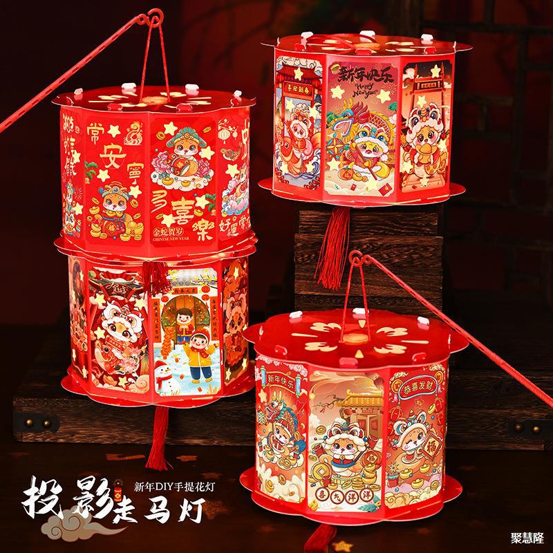 2025新型提灯手作りdiy材料児童幼稚園手持ち発光新年提灯塁徳株