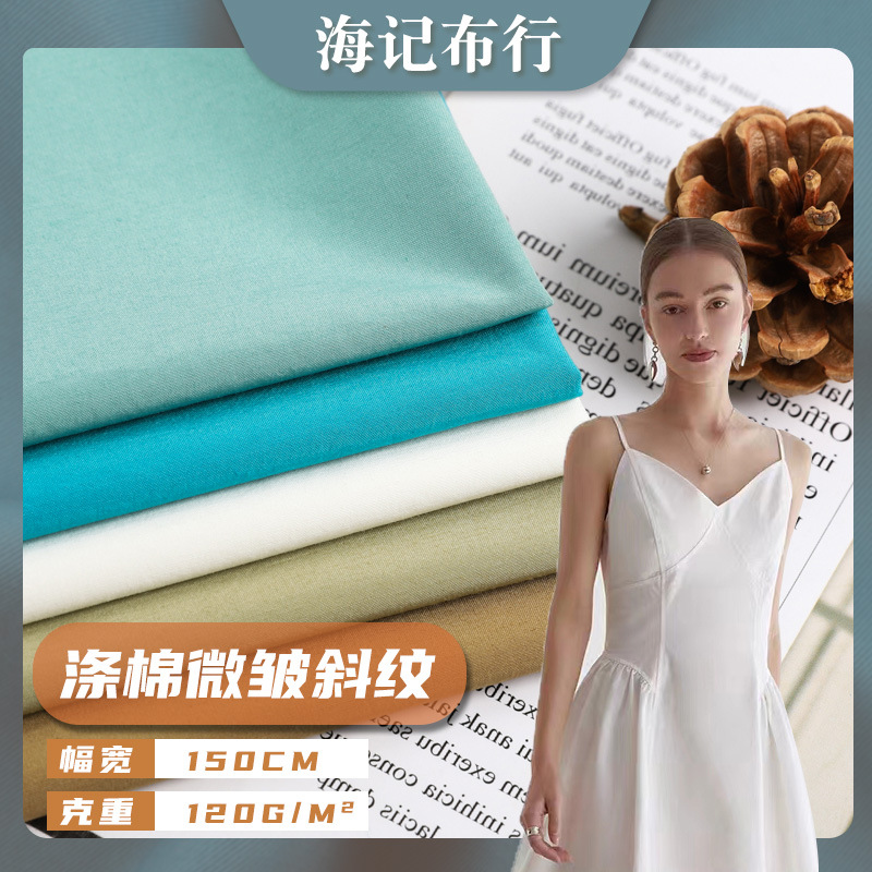 既製ドレス、シャツ、ファッション生地、夏用120g薄手ポリエステル綿、少しシワのあるツイル婦人服生地卸売