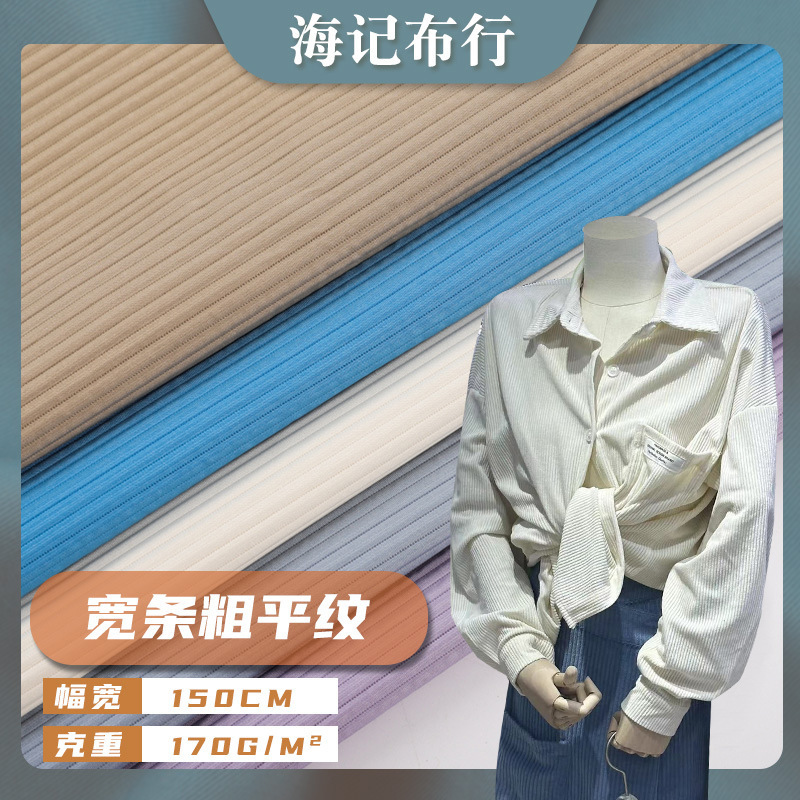ポリエステルワイドストリップ厚手の平織り生地 170 グラム春と秋の長袖ラペルシャツカジュアルスタイルジャケット生地衣料品生地