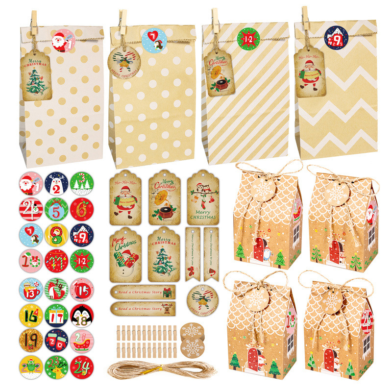 クリスマスギフトバッグクリスマス降臨カレンダーカウントダウン包装箱袋小家プレゼント箱キャンディー箱現物