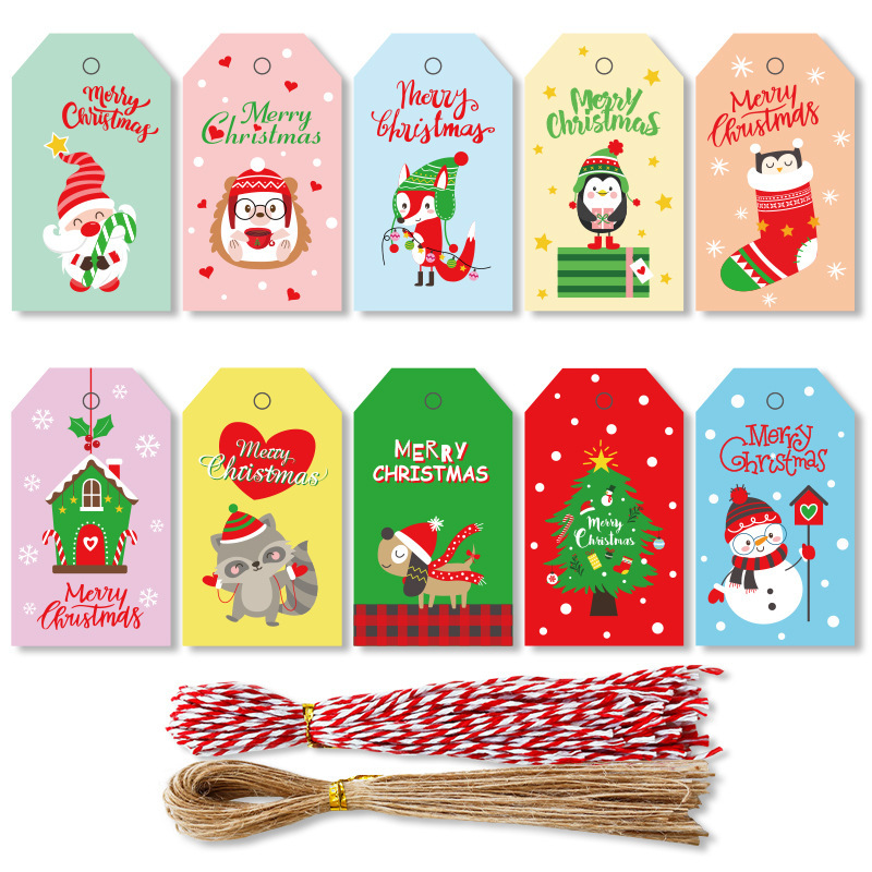 クリスマスの絵のタグの漫画のキツネのペンギンの贈り物の包装のタグのクリスマスのパーティーの装飾のタグの100セット