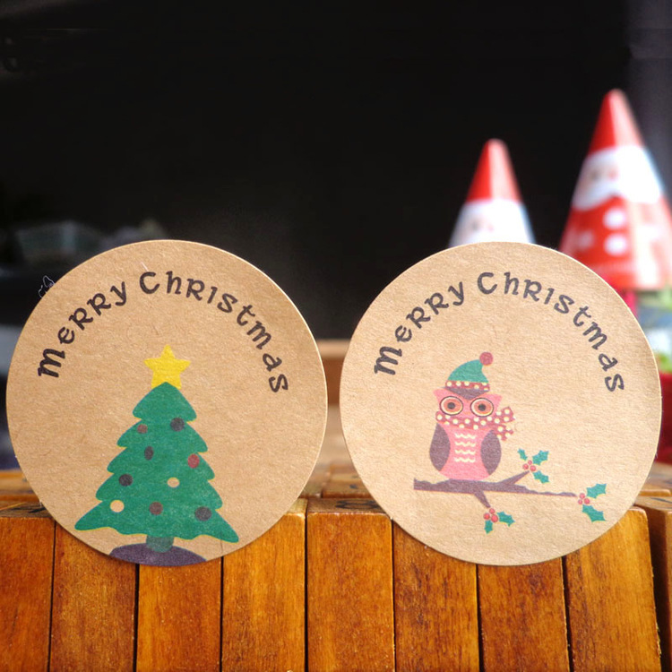 12枚の価格の経典のクリスマスツリーのシールはクリスマスのフクロウの焙煎包装のプレゼントの袋の装飾のシールを貼ります。