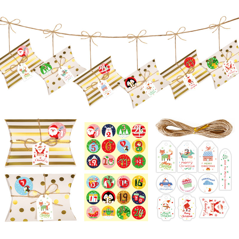 クリスマス箔押し枕箱クリスマス降臨カレンダーギフト箱アマゾンdiyパーティープレゼントキャンディー箱24セット