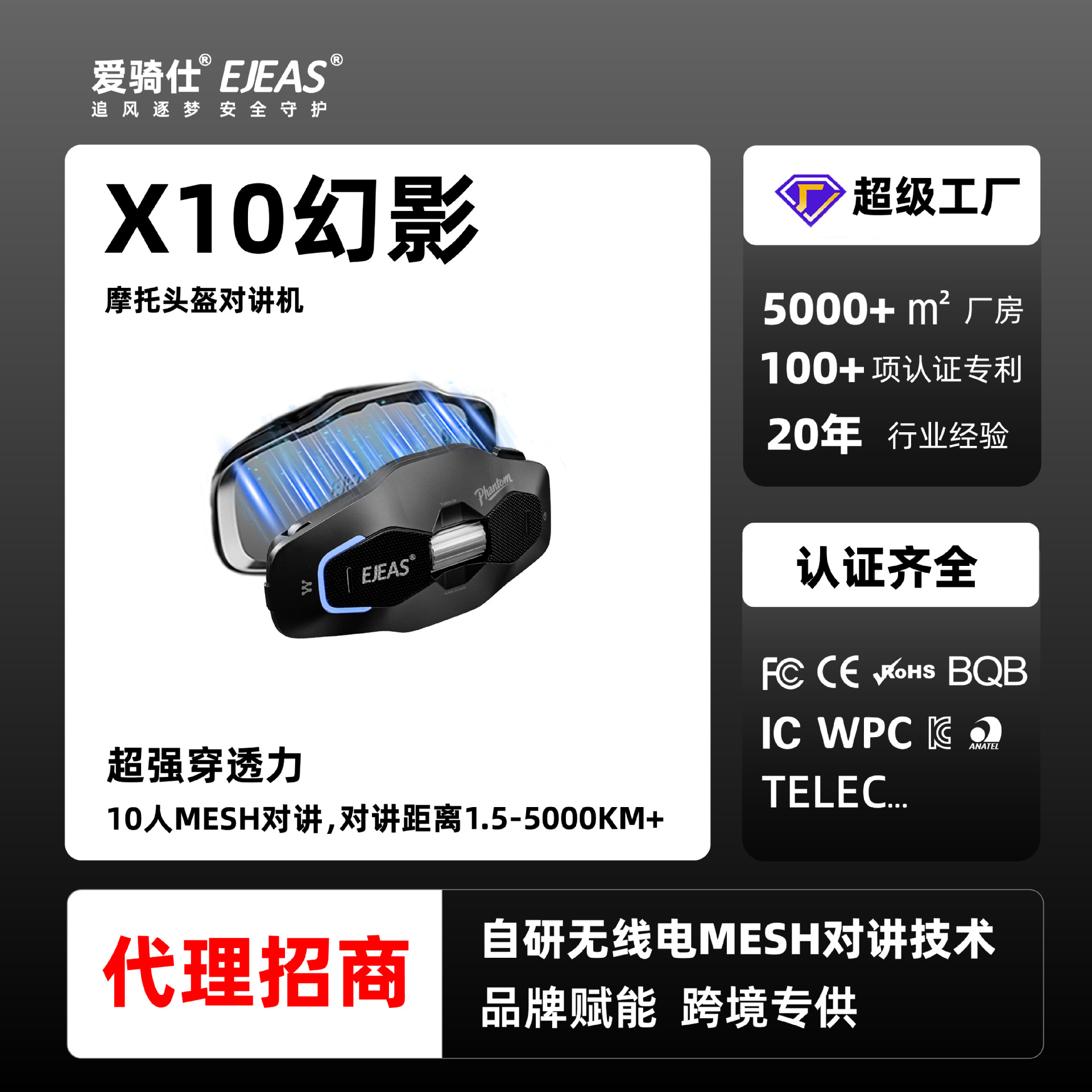 EJEAS防水磁気メッシュインターコム、10人同時通話対応、バイクヘルメット用BluetoothヘッドセットX10