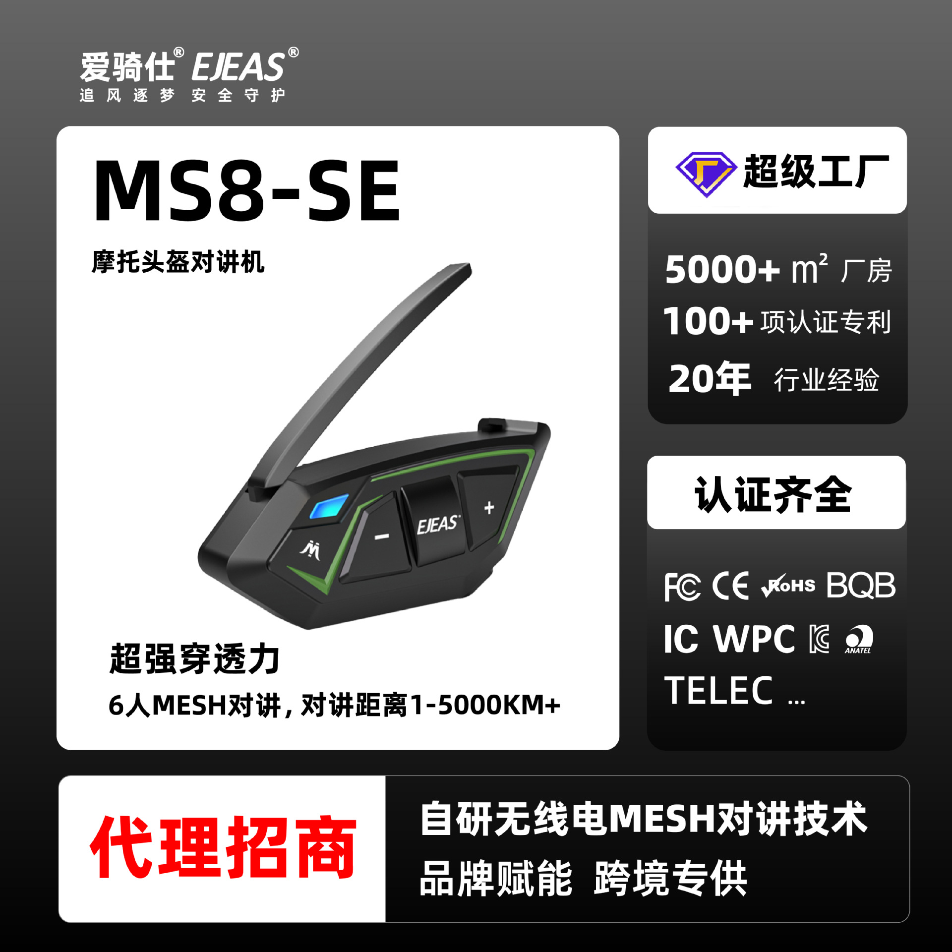 Ejeasメーカー直販ms8オートバイヘルメットbluetoothインターホンイヤホンは、8人が同時にダブルバッグを話すことをサポートしています