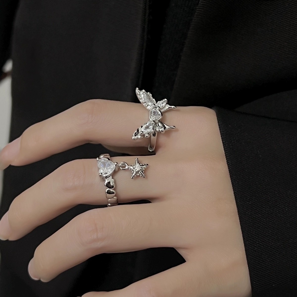 星の愛の氷河の蝶の開口部の指輪の女性の高級感のy 2kの甘いクールなギャルのinsの冷たい風の個性の指輪