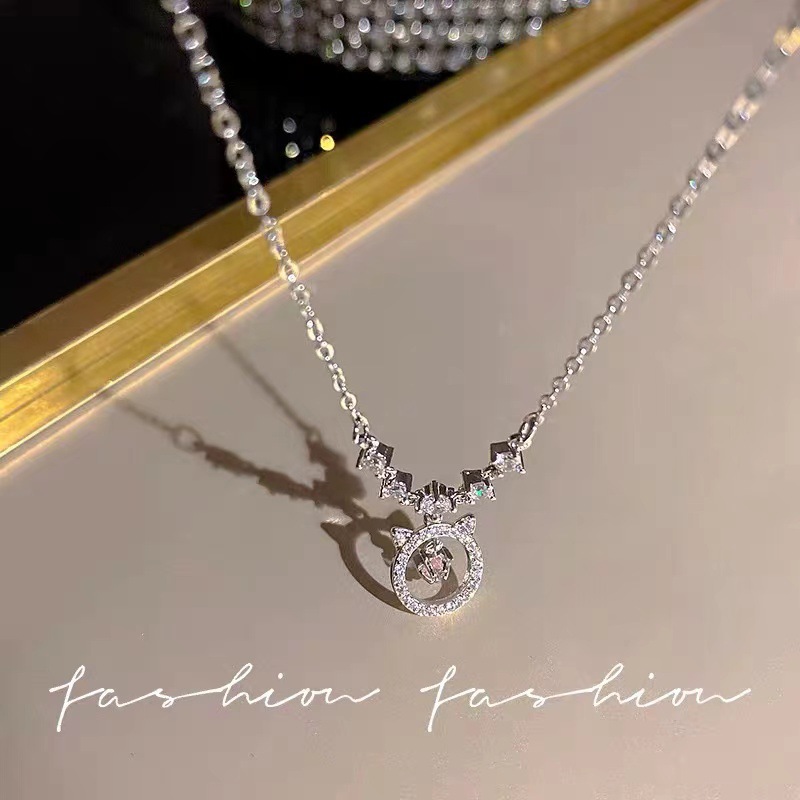 軽くて豪華なピンクの猫のネックレスの女性のネットの赤い高級感の甘い百はinsの小さい大衆の冷たい風の鎖を配合します。
