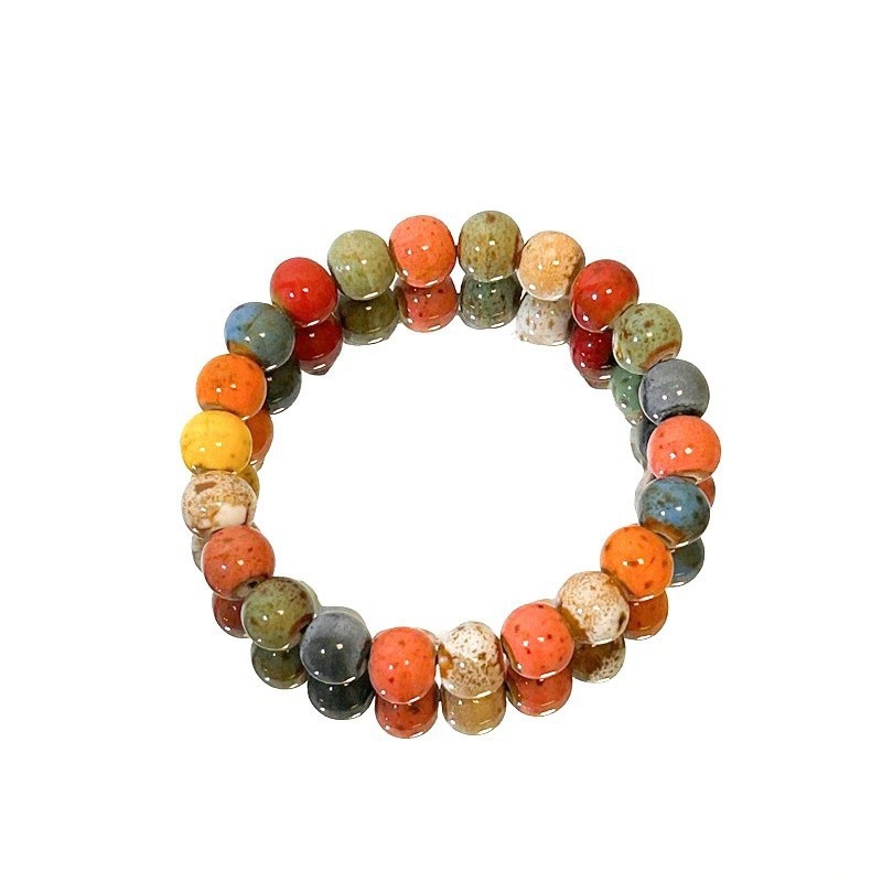 新中国式陶磁器釉薬グラデーションカラービーズブレスレット女2024夏百合高級感手飾り