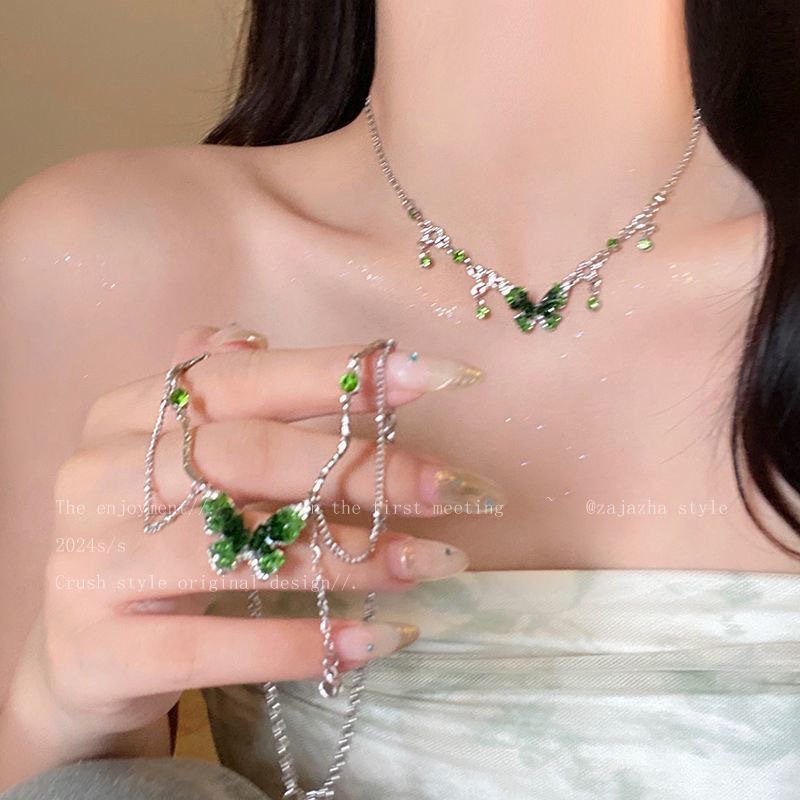 緑のジルコンの蝶のネックレスは女性の鎖の鎖の首の鎖のchokerの軽い豪華な大衆の高級感の2024新型を飾ります。