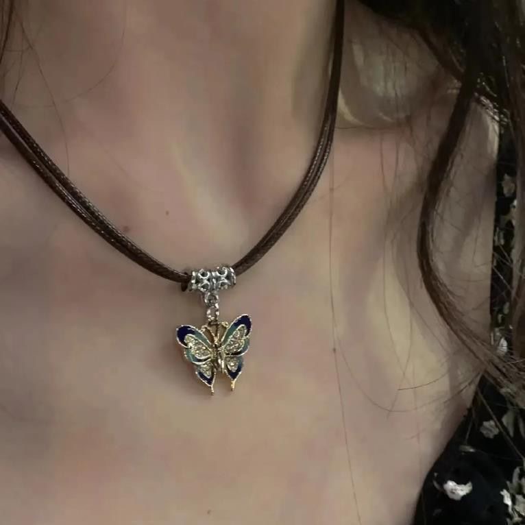 新中国式レトロ色絵蝶ネックレス女性2023年新型潮鎖骨鎖高級デザイン感小衆首鎖