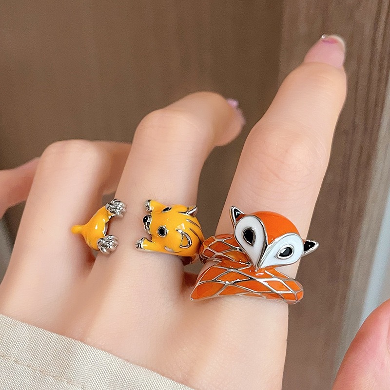 油を垂らしてエナメルの漫画の小さい狐の口の指輪の小さい大衆の設計のかわいい子供の趣味のinsの冷たい風の食べ物の指の指輪の女性