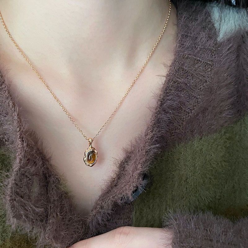 新中古虎眼石insネックレス女性高級感小衆デザイン感ファッションセーター鎖骨鎖