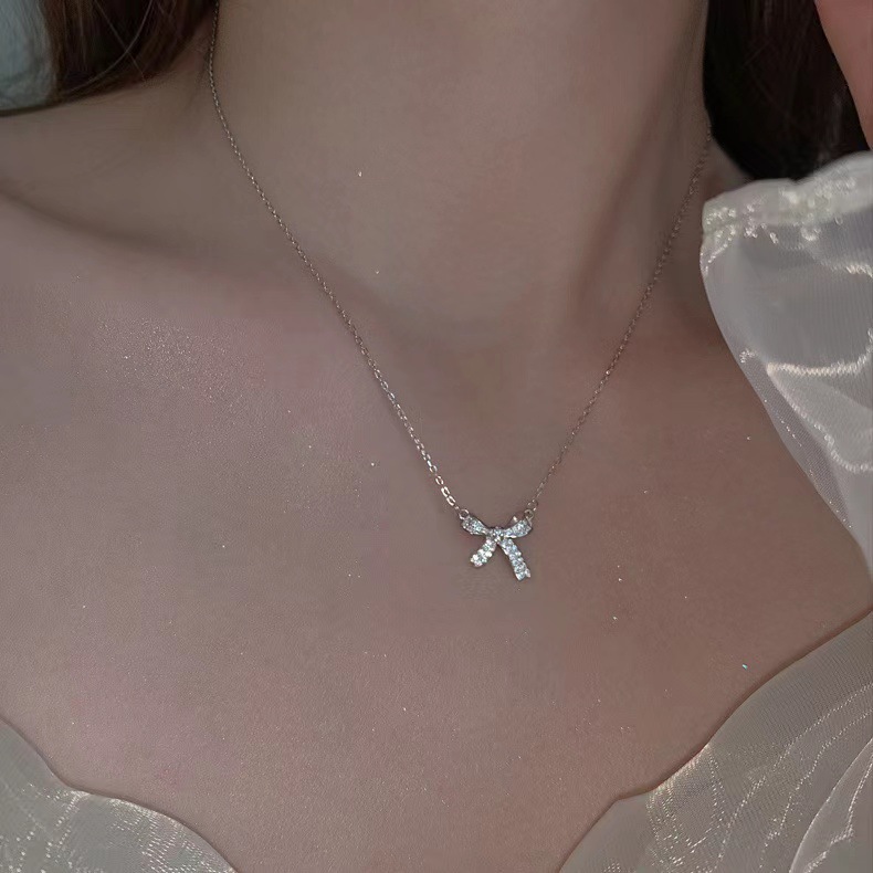 新しいネックレスのフラッシュドリルの蝶結びの鎖の女性のシンプルなデザインの大衆insの冷たい風の軽い贅沢感のネックレス