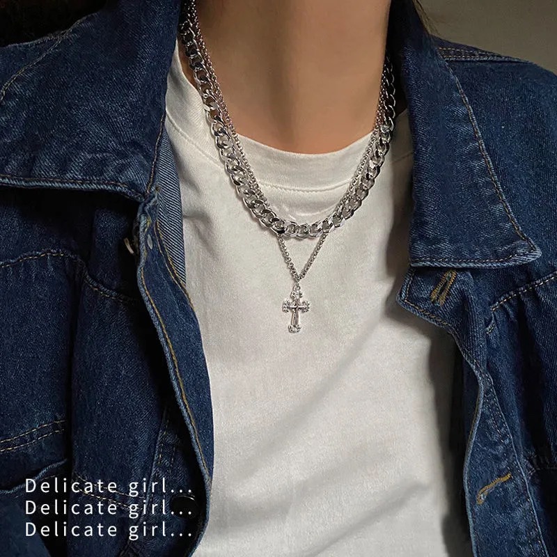 Insヒップホップクロスのネックレスの女性の潮は軽くて豪華で、大衆のデザイン感があります。