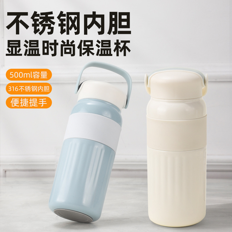 新型保温カップ316ステンレス携帯取っ手知能顕温高颜値車載運動鈴保温カップ