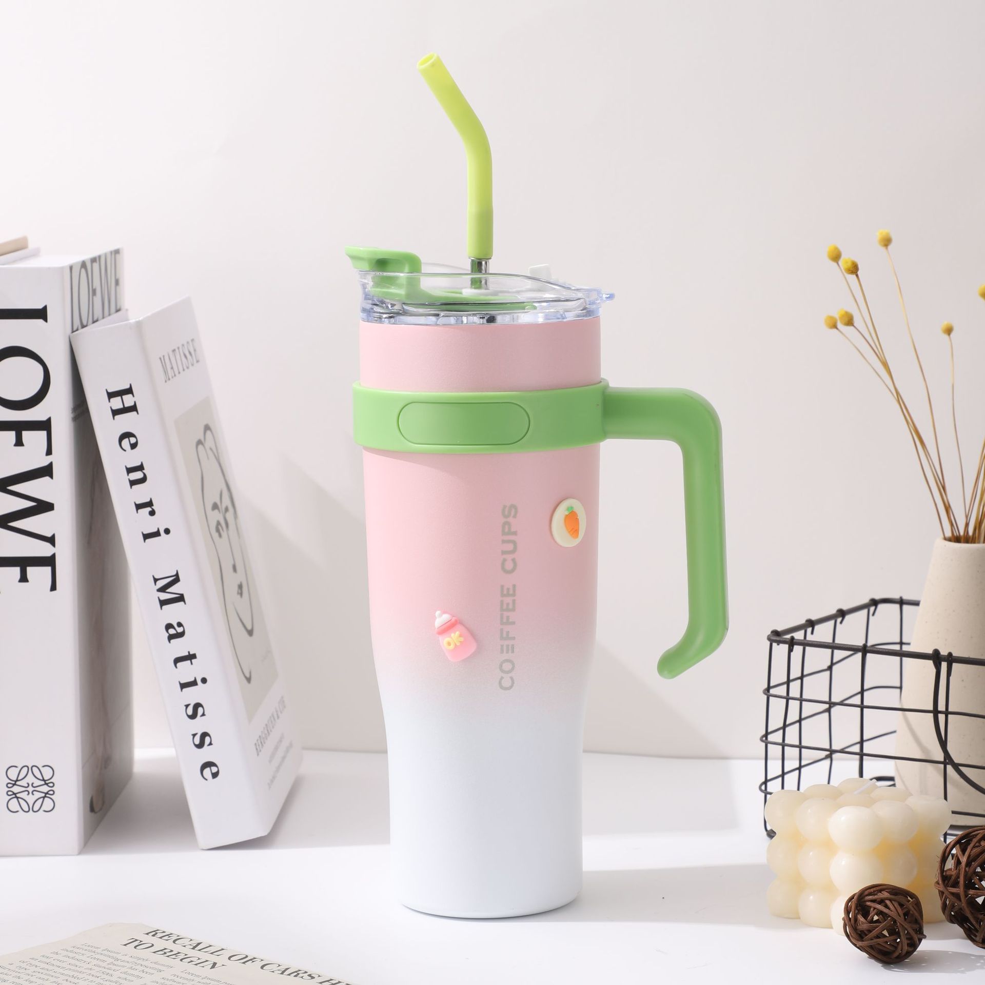 カスタマイズされたクロスボーダー 40 オンスカーカップ屋外ハンドルストローカップ大容量ステンレス鋼断熱アイスカップ