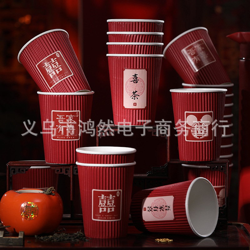 結婚用品大全結婚祝い使い捨て紙コップ赤いお祝い結婚式婚約披露宴厚い段ボールコップ