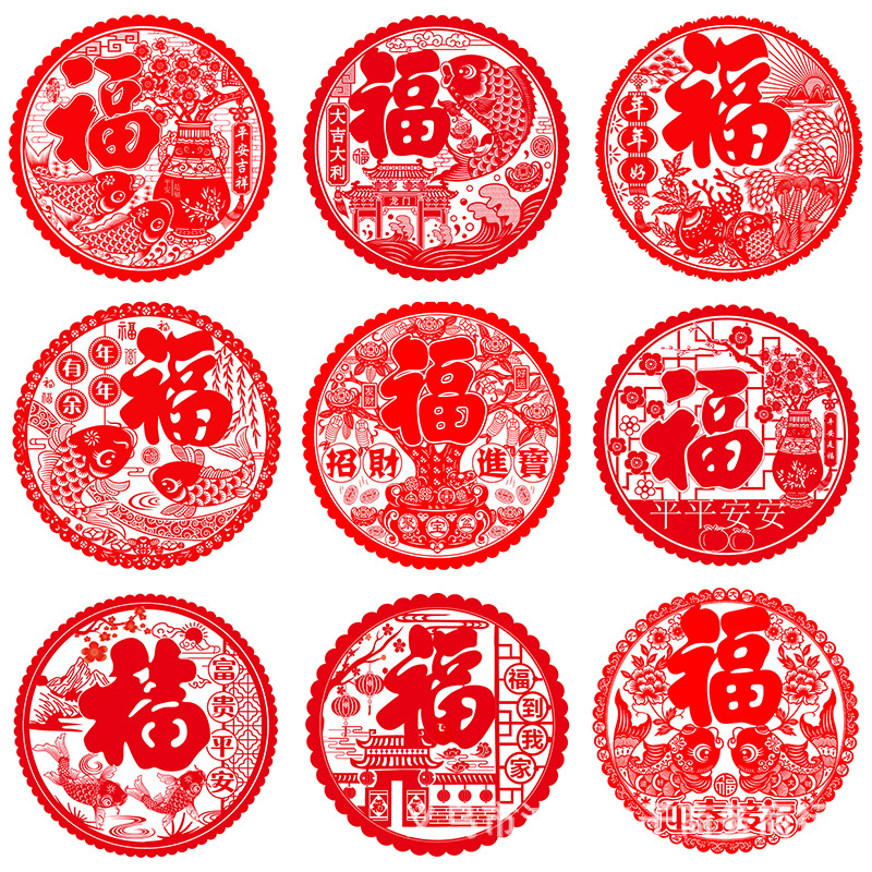 2022虎年新年窓花家庭用ガラス貼り静電貼り旧正月装飾用品正月福字門年画