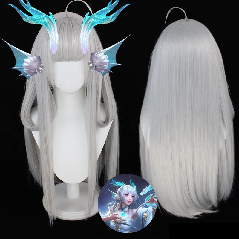 王者の人魚姫輪莉亜cosかつら飾り栄光ガボン反反り青い偽毛卸売り