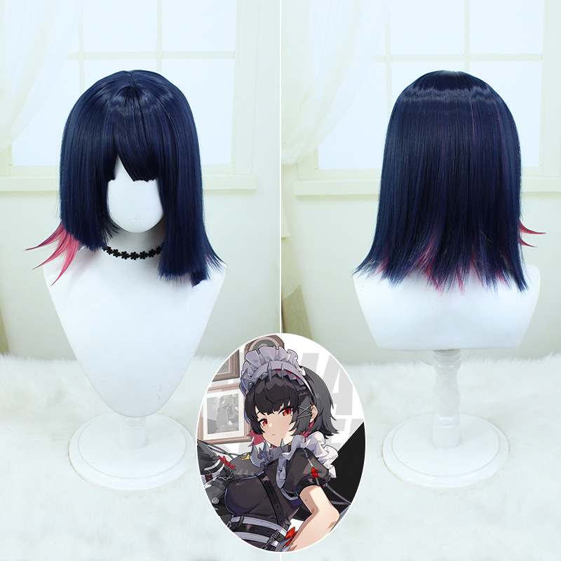 漂艺绝区零 艾蓮·乔コスプレウィッグ シャークガール シミュレーション頭皮 特殊調色 ブラックブルーとローズピンクの合成ウィッグ