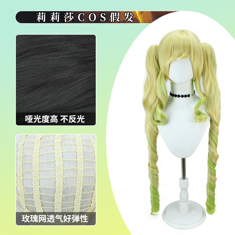 ロックは淑女の趣味です。鈴の宮リサcosかつらは黄緑グラデーション虎口挟みのツインテール女です。