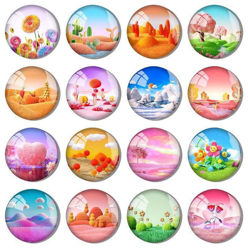 工場カスタマイズされたガラス冷蔵庫マグネットクロスボーダーホット販売クリエイティブラウンドマグネット花文化創造旅行お土産マグネット