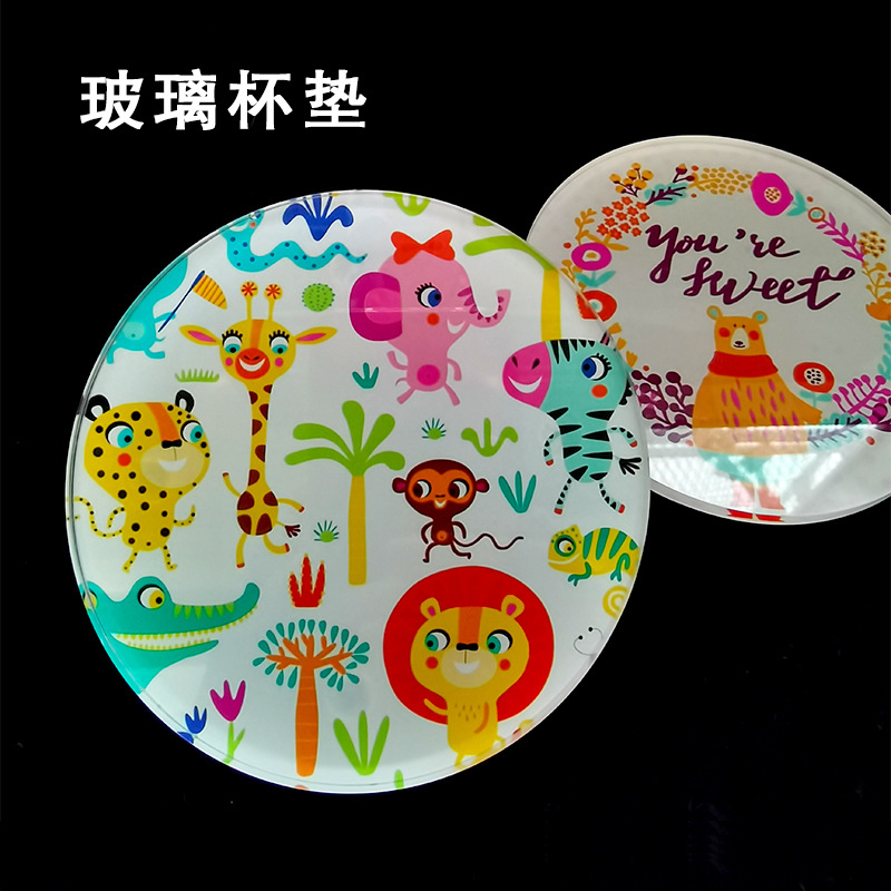 現物卸売りクロスボーダー個性アニメガラスコースター円形ロゴカップホルダーuv印刷手土産滑り止めマット