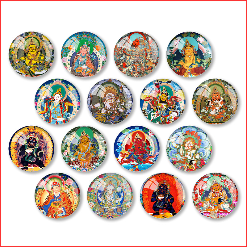 唐卡五路財神水晶ガラスパッチ円形六字真経心呪部品守護神宝石片アクセサリー