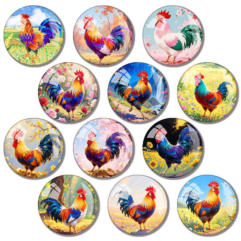 国境を越えたホットセールクリエイティブ手描き冷蔵庫マグネットカスタムラウンド塗装鶏マグネットガラス 3D 立体磁気マグネット