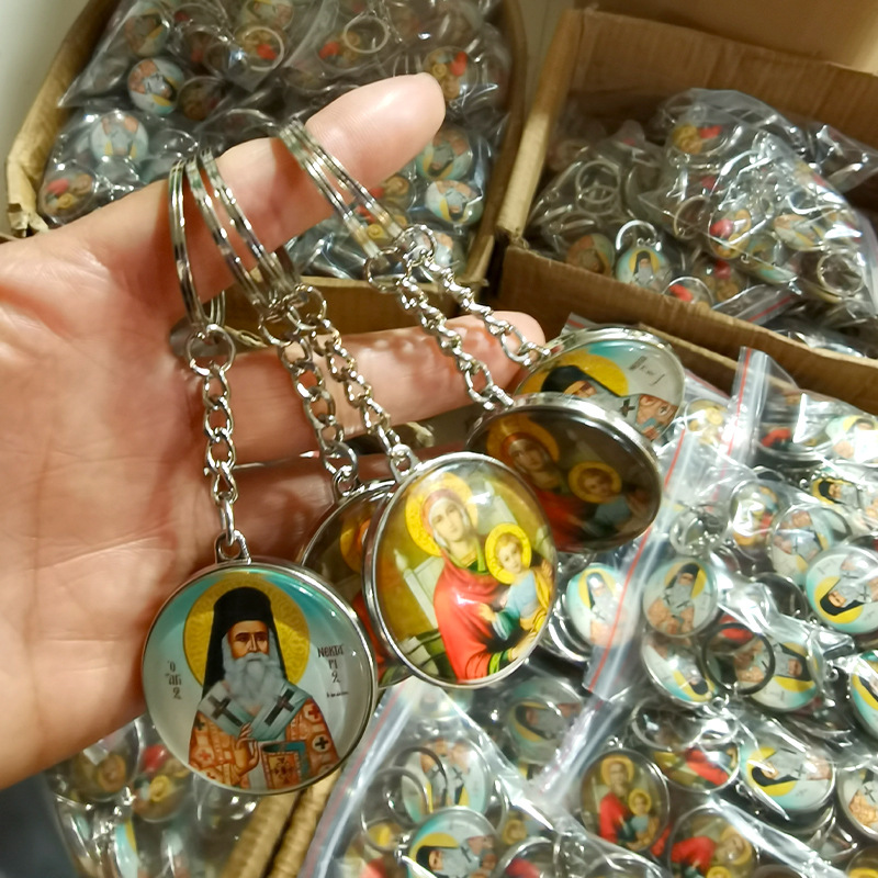 卸売りの財神唐カードのガラスの宝石の切れの漫画の財神のおじいさんは装飾のヘアピンのネックレスの指輪のキーチェーンを飾ります。