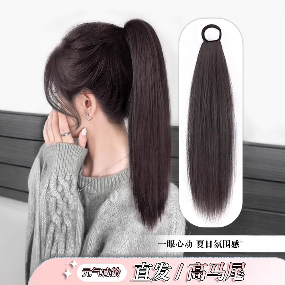 女性のかつらを染めてまっすぐなポニーテールをシミュレーションします。