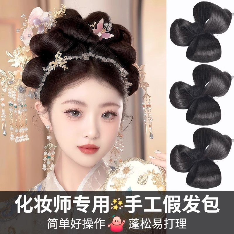 高頭蓋頂新中国式カールバッグ漢服秀禾朝衣髪型国風新婦盤髪化粧スタイル専用