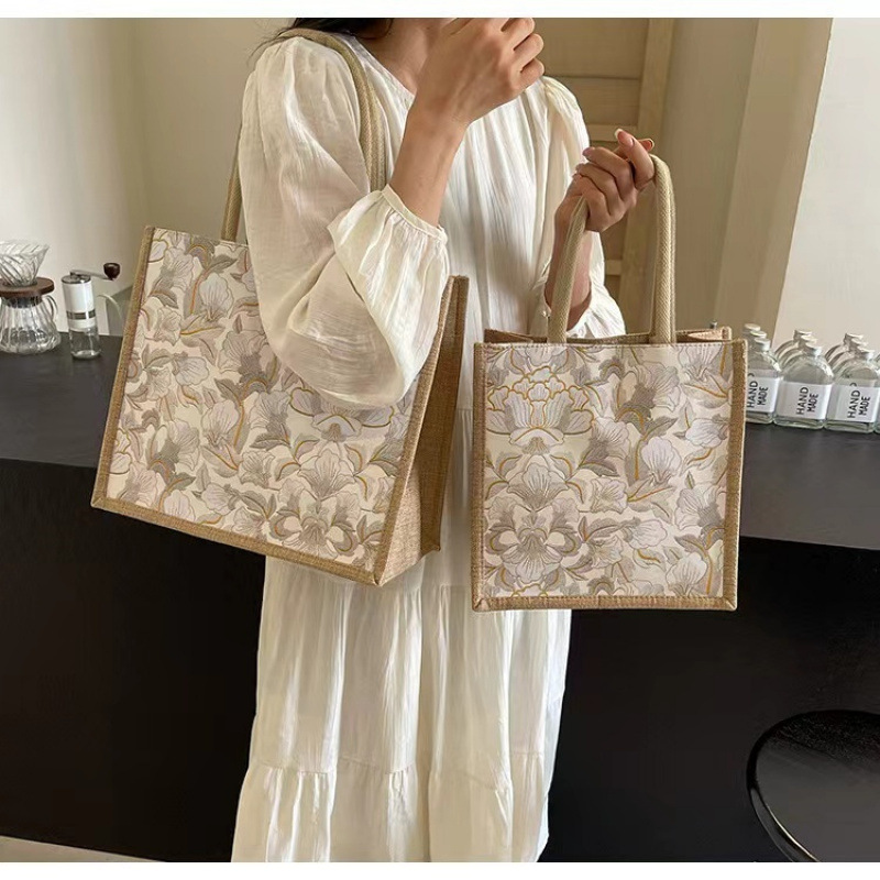 新しいリネン立体ハンドバッグ、大容量ショッピングバッグ、通勤やお出かけにファッショナブルで軽い高級ショルダートート