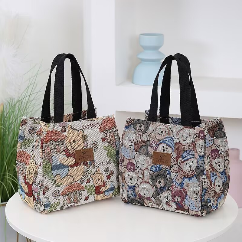 新しいハンドバッグ漫画肥厚キャンバスバッグママハンドバッグ大容量仕事バッグ学生弁当箱弁当
