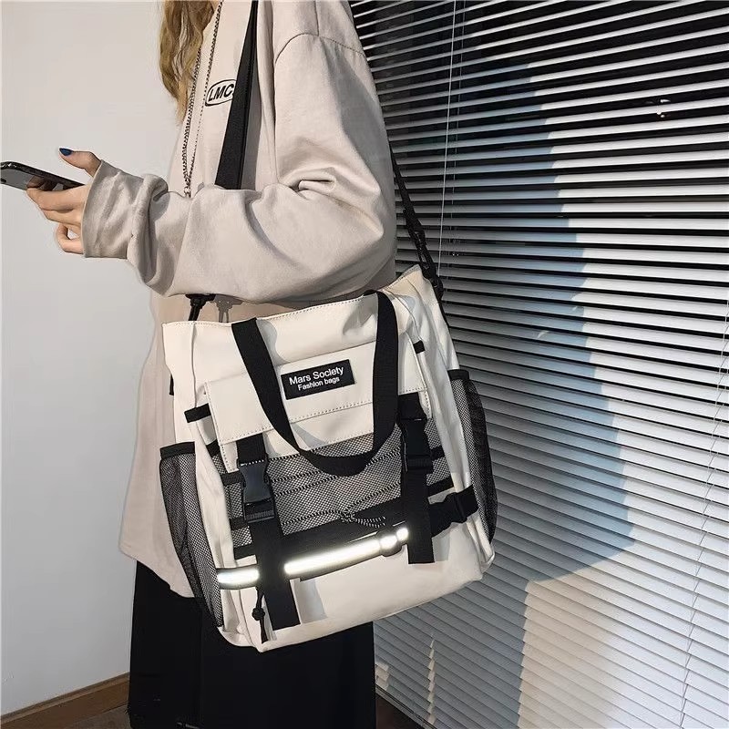 ショルダーキャンバスバッグ新しい和風作業服バッグ大容量学生クロスボディバッグ男の子反射スクールバッグ女性のハンドバッグ