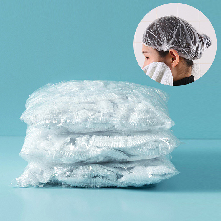 使い捨てシャワーキャッププラスチック防水ヘッドギアホテルヘアカラーバーバスキャップ防塵ラップフィルムカバーシャワーキャップ