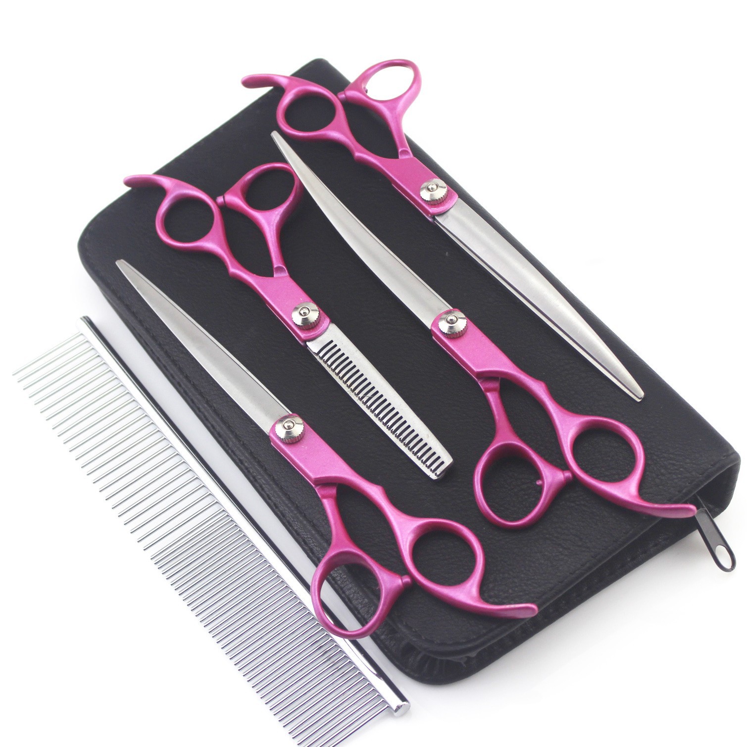 7.0インチカラー柄分割カット4本入ペット美容はさみストレートカットセット