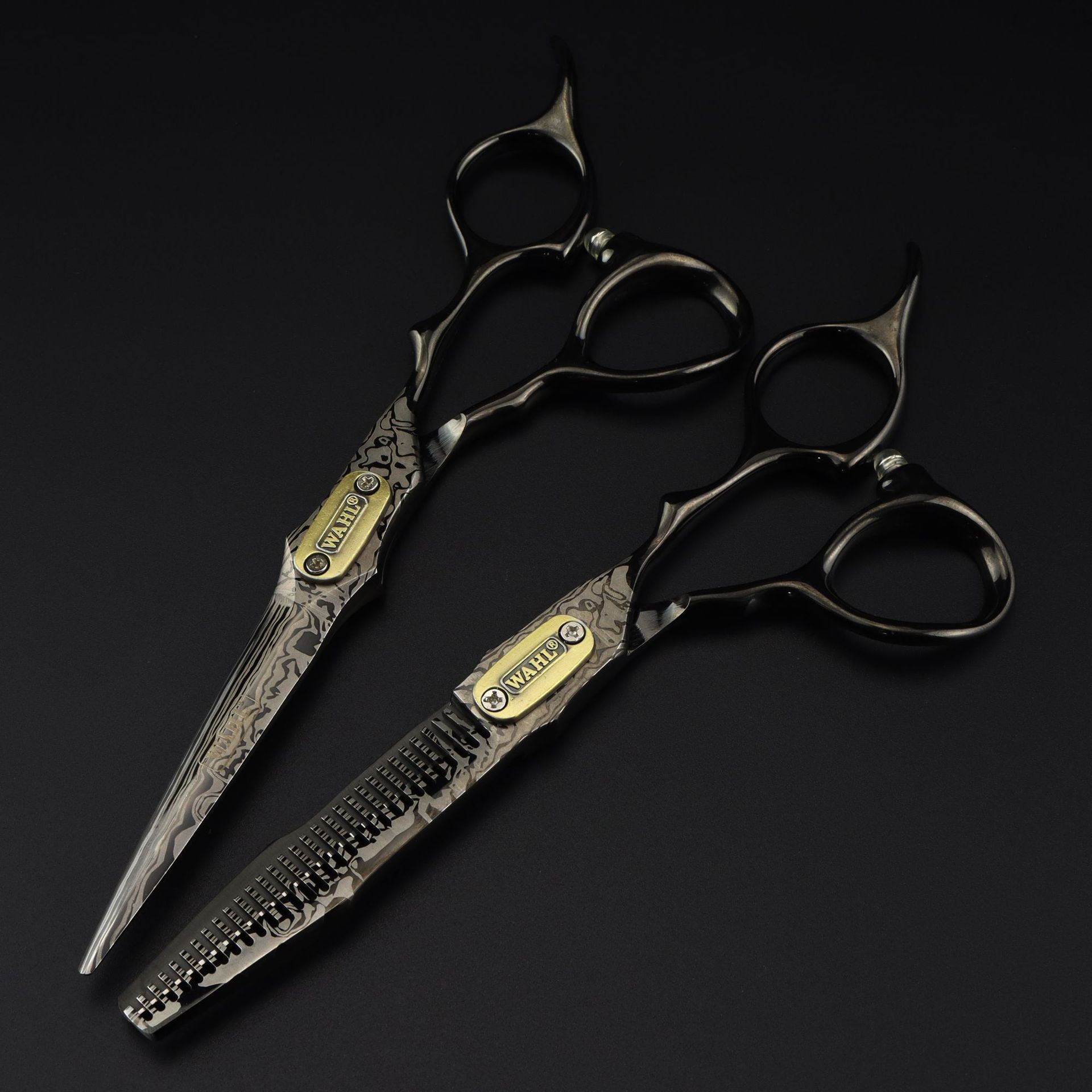 6.0インチFJ--21の個性的な黒いワールダマスカスの理髪ハサミの理髪は専用の双剣型を切ります。