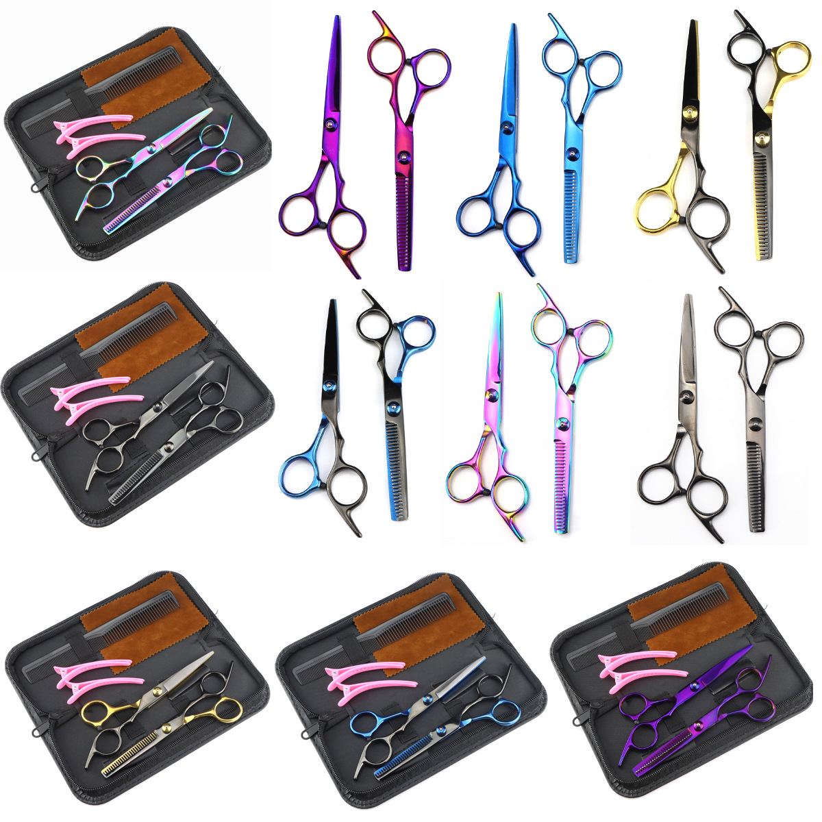 6.0インチのお得なカラーの高ねじの斜めの尾の理髪は切って前髪を切って薄く切って7色を切って選択します。