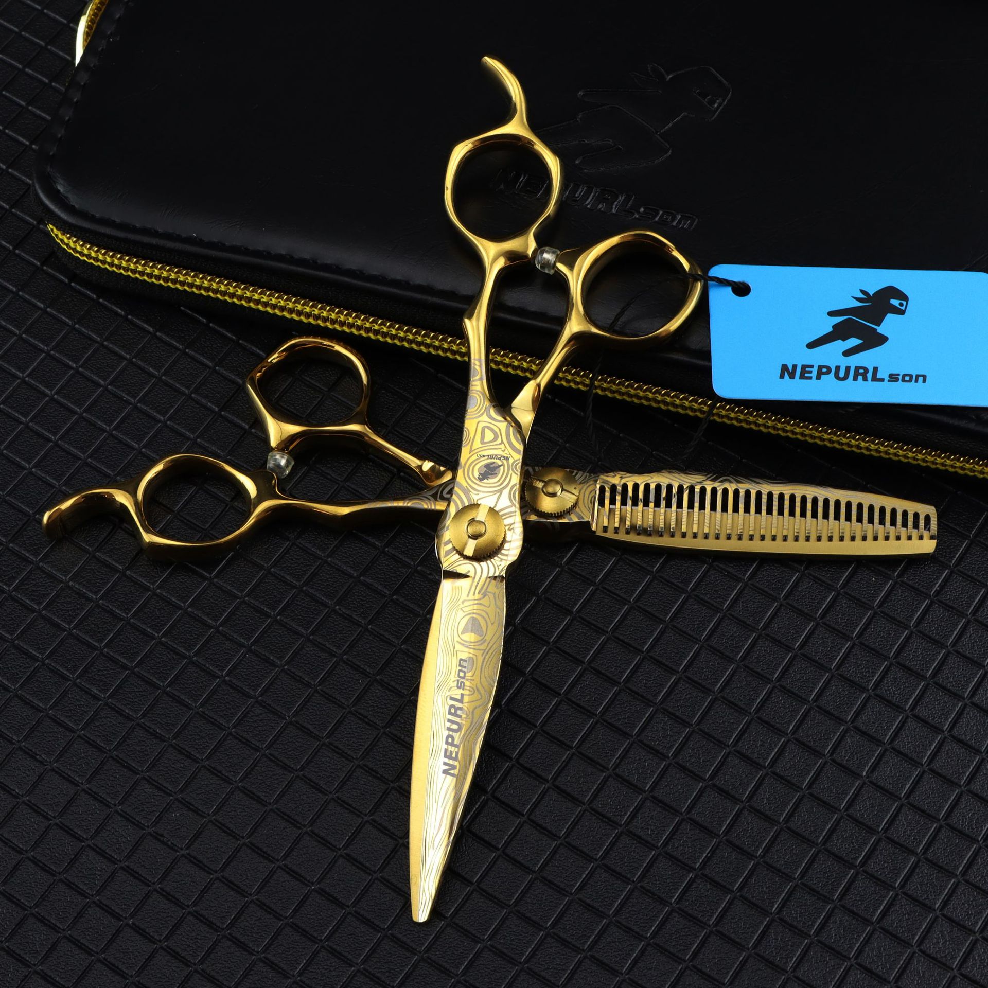 金色6.0インチ奈普森金色鋼ダマスカス美容カット
