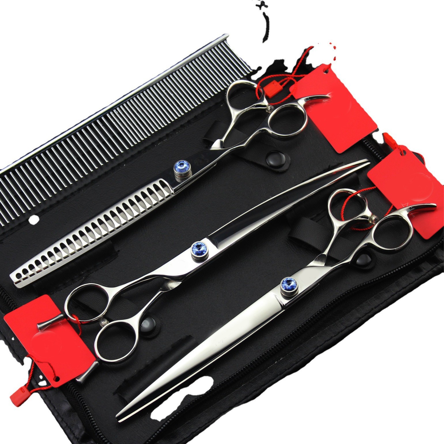 8.0インチ紫龍宝石左手3本セット高級ペット美容ハサミ