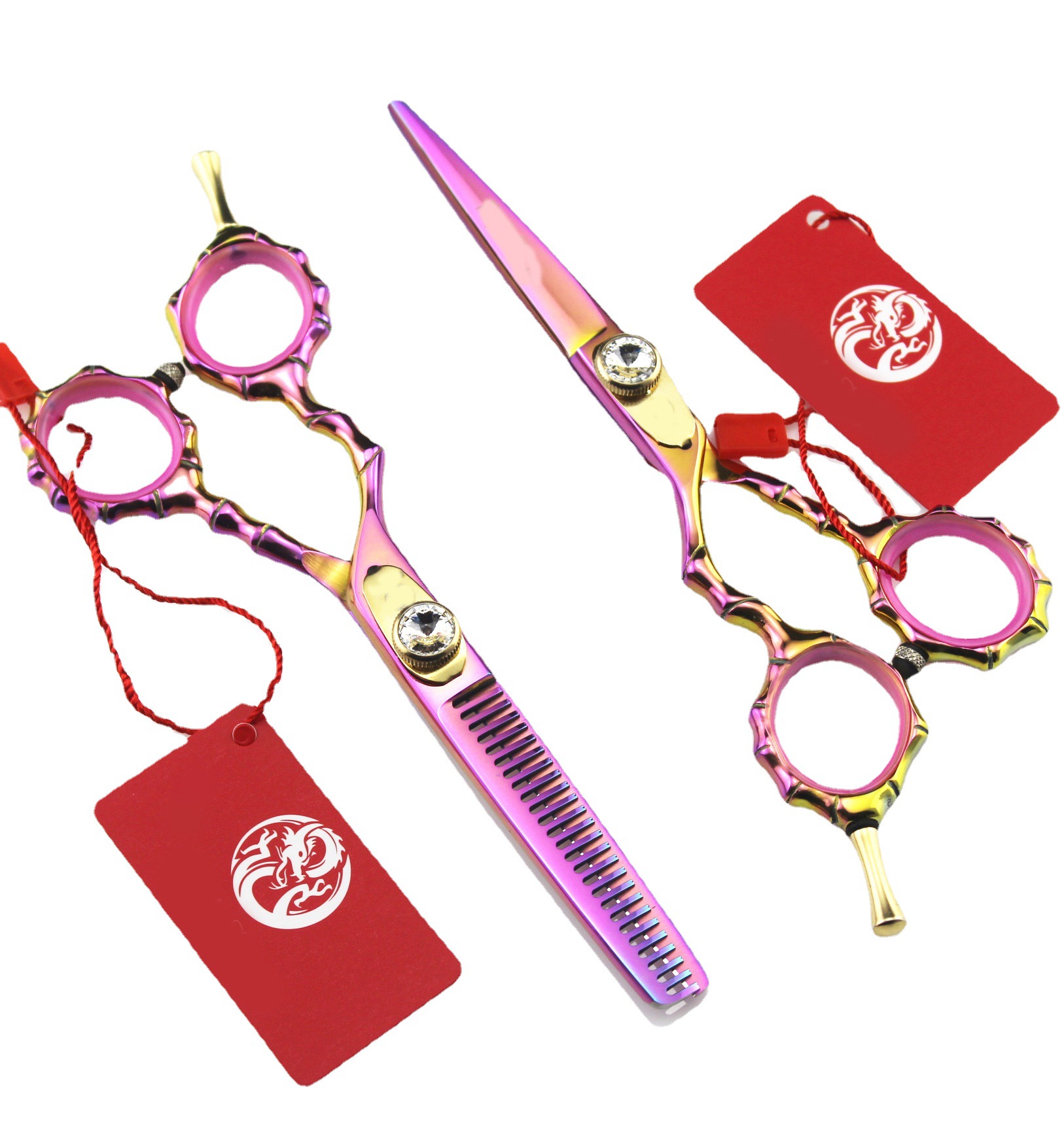 紫龍5.5インチ高級カラー宝石美髪ハサミ理髪カット前髪カット