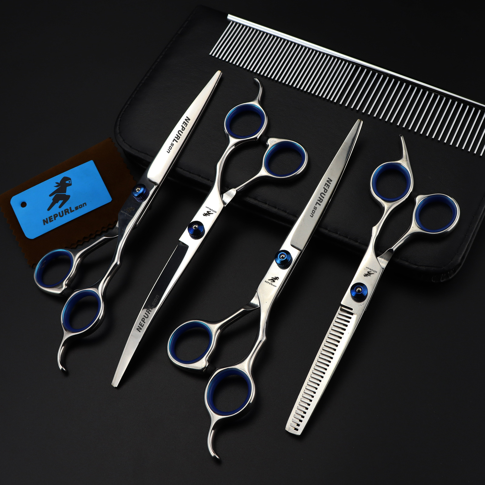 7.0インチナイプセン高ネジ4本入ハイグレードペット美容はさみストレートカットセット