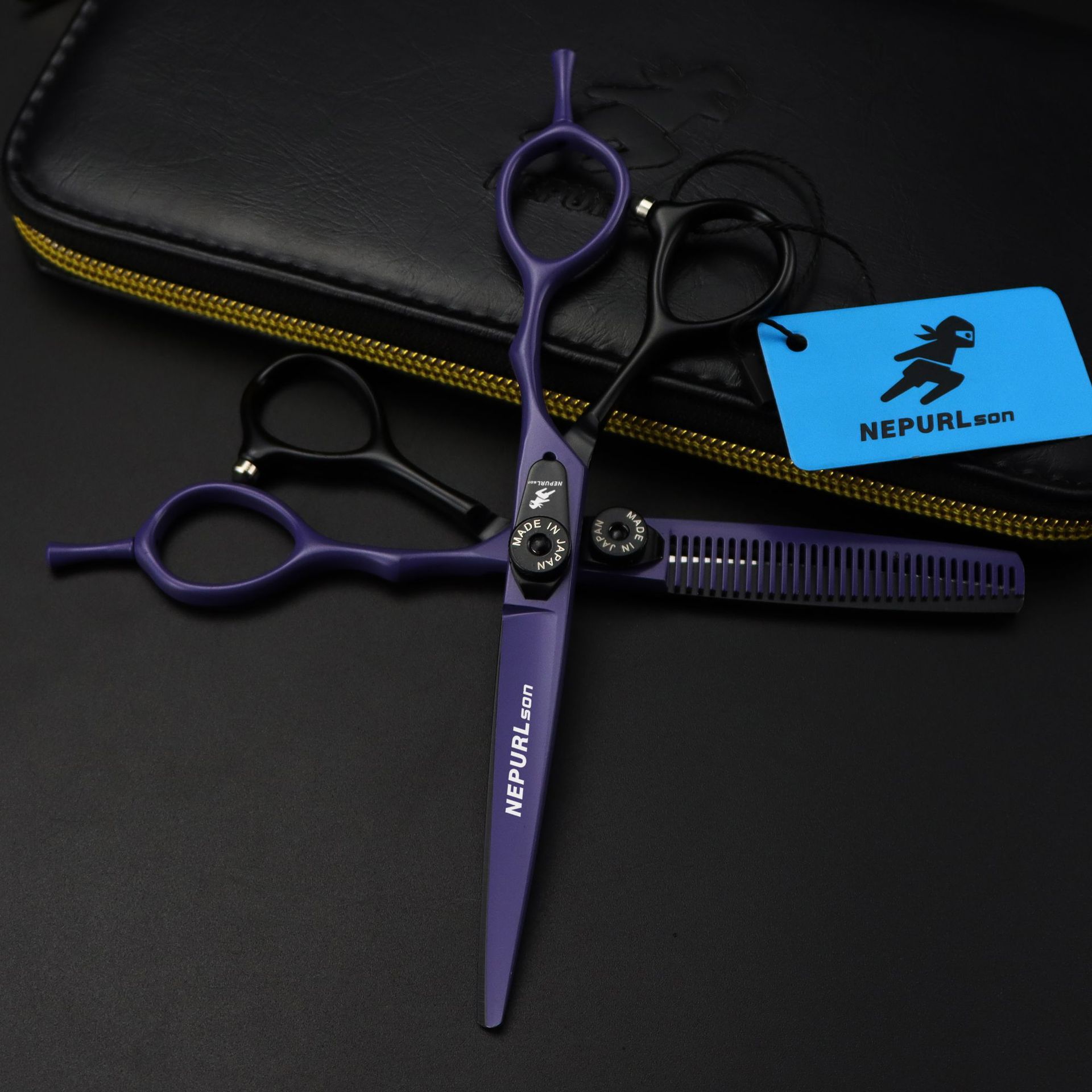6.0インチ奈普森黒紫色美髪ハサミ理髪はさみフラットカットfgf05