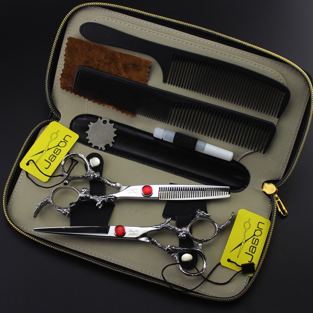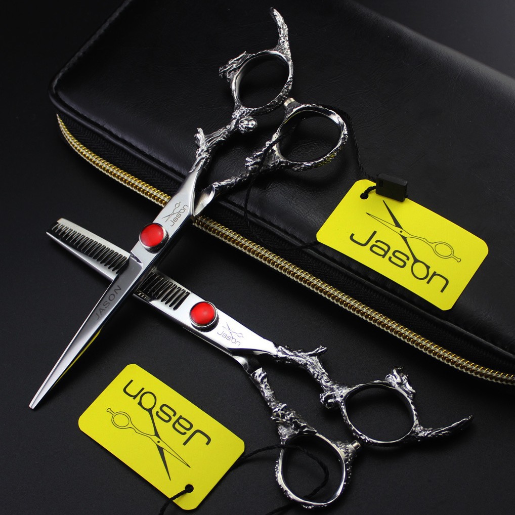 ジェイソン/ジェイソンHE-01龍柄美容ハサミ平切歯ハサミ薄切りセットXL0-0401