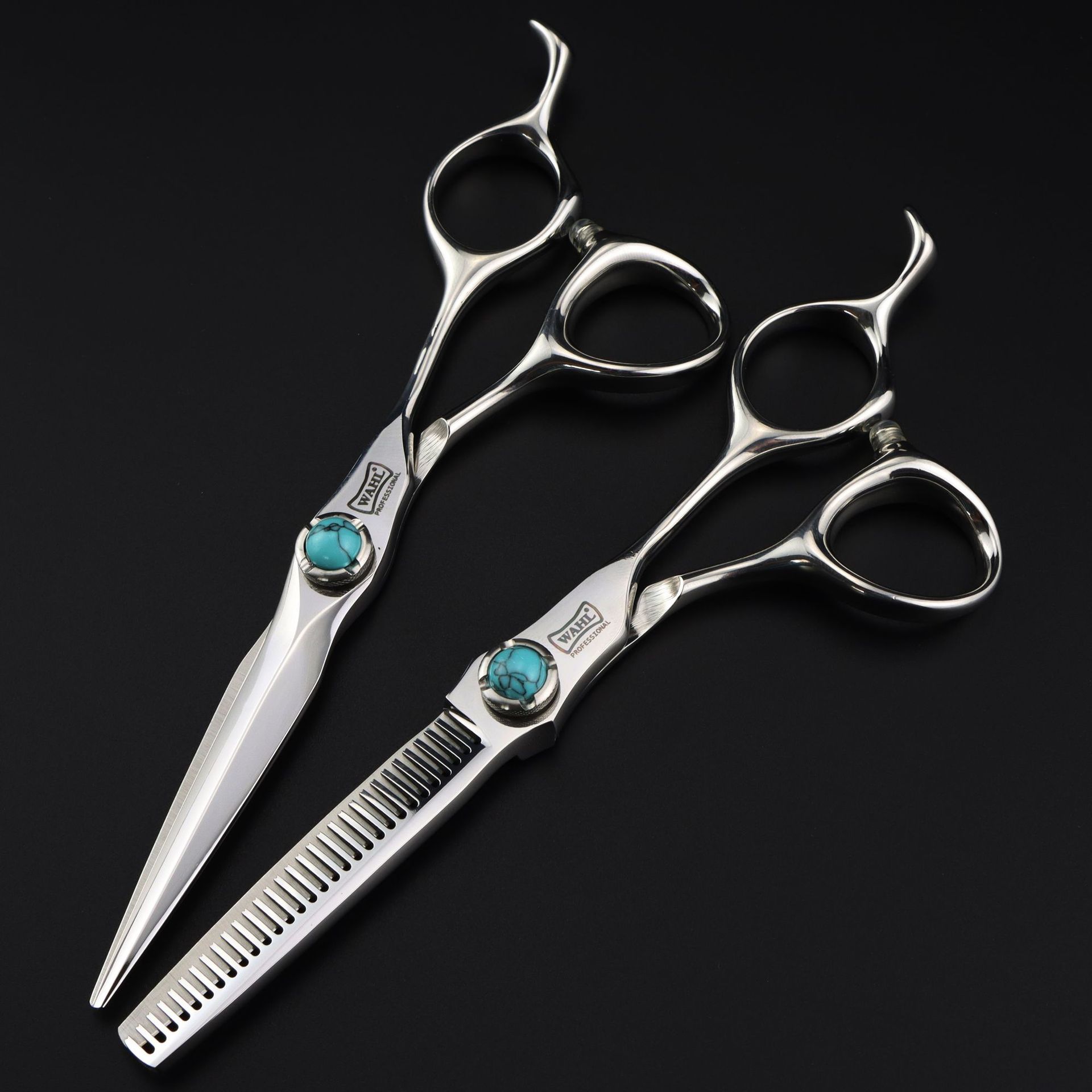 6.0インチFM-123直柄大剣背緑松石金華爾亮色平切歯切り美容カット