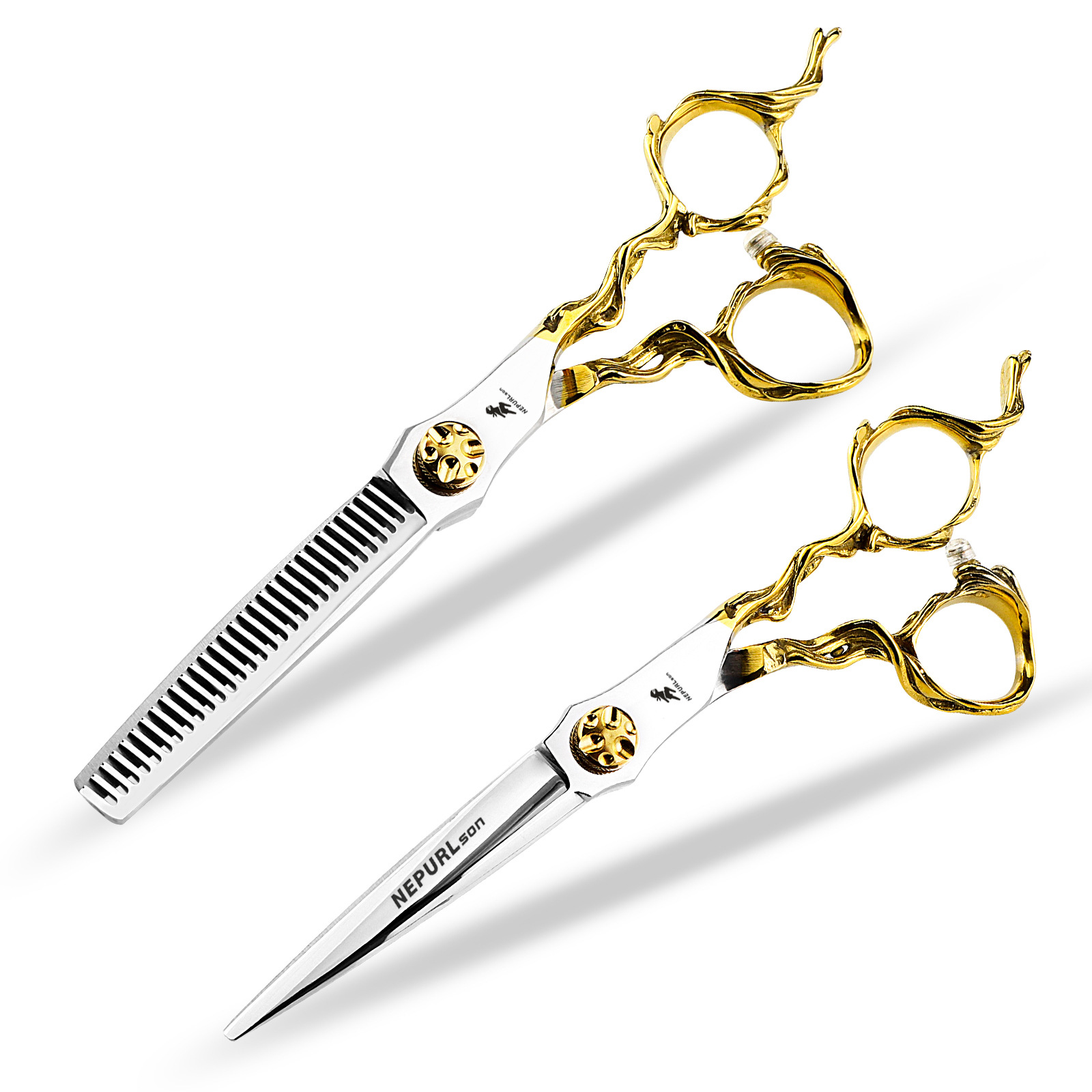 6.0inch ハーフゴールドの木の根の柄が付いたネプソン理髪はさみ、ヘアカットはさみ、平はさみ、前髪はさみ、歯付きはさみ、梳きはさみ